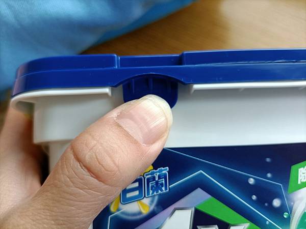 護兒蓋設計洗衣盒開關需先按再往上推才打得開,